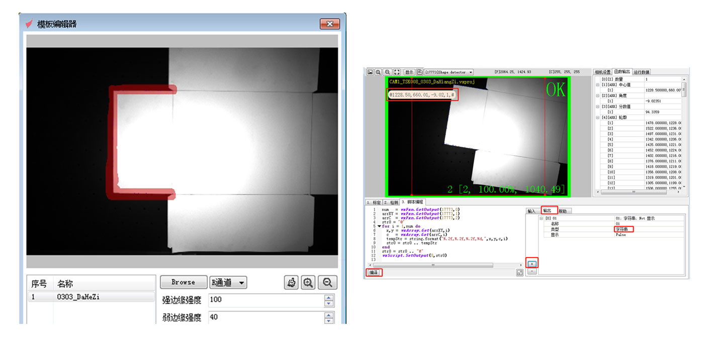 典型配置中(zhōng)采用(yòng)單相機識别,鏡頭少、光源少、機架安(ān)裝(zhuāng)少、成本低、調試工(gōng)作(zuò)量極簡。可(kě)以任意選擇要識别的局部輪廓特征,不拘泥于完整面紙圖像。