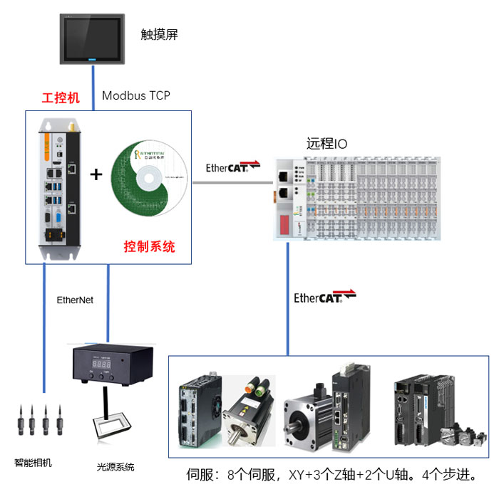 4、系統集成極高,運動控制,IO控制,Modebus,Tcp/ip,視覺識别,光源控制。都可(kě)在一台工(gōng)控機完成,無需其他(tā)硬件。